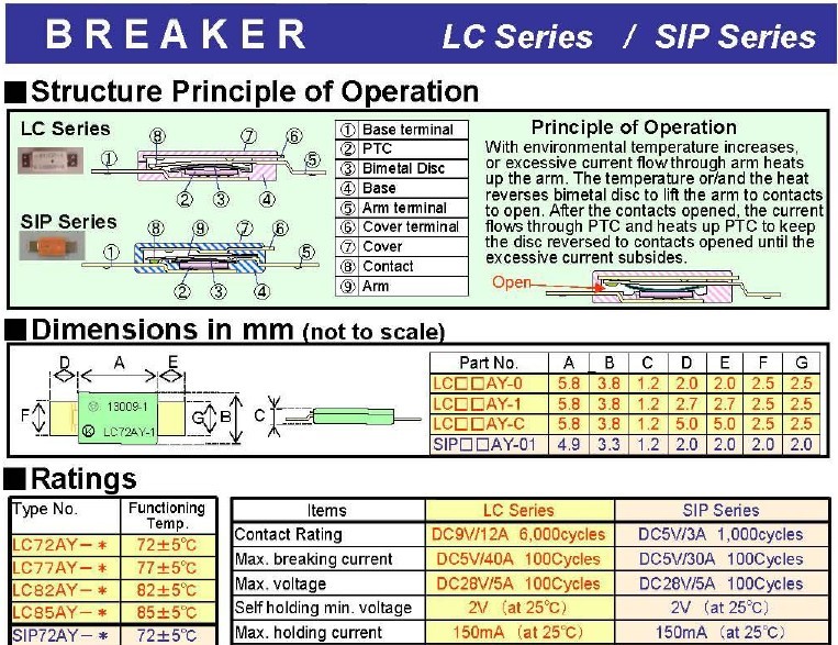 東莞市愛多電子有限公司銷售日本小松KOMATSU、Bourns的電池保護溫控器,LC系列、HC系列、SIP系列等,該溫控器體積小,耐電流高,大量應用在鋰電保護板上,我司長期優勢庫存,歡迎采購:
