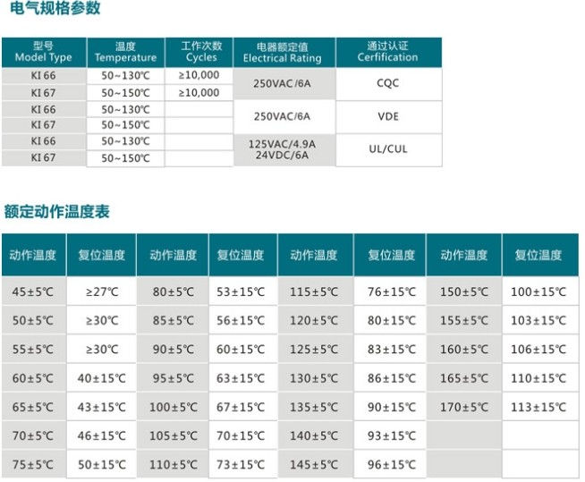 KI66/KI67優點:體積小 便于安裝 速動型雙金屬片 真空浸漆工藝 反應速度快;