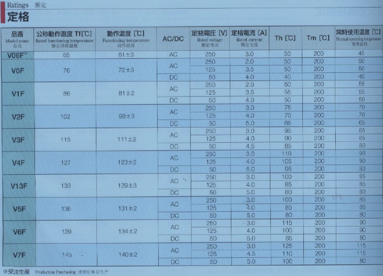 3)V-F系列,AC250V 3A/AC125V 3.5A-4A,其具體型號規(guī)格如下: