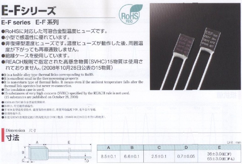 東莞市愛多電子有限公司銷售日本田村TAMURA各種型號溫度保險絲,其具體型號規(guī)格如下: