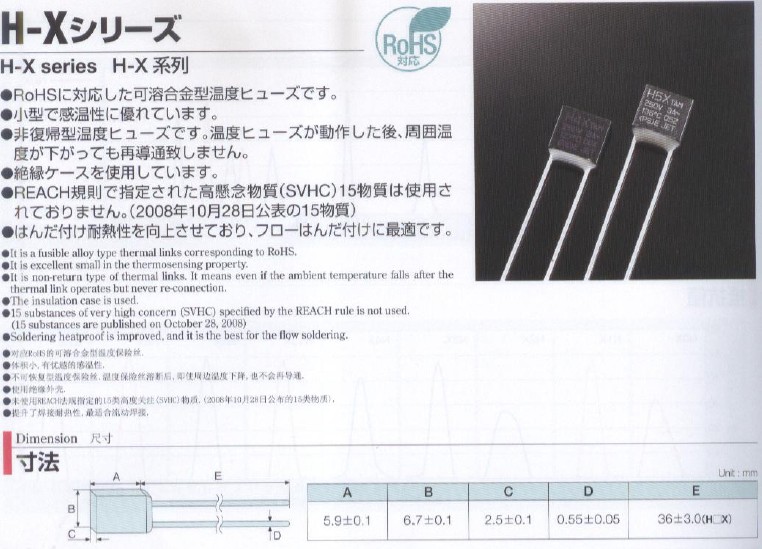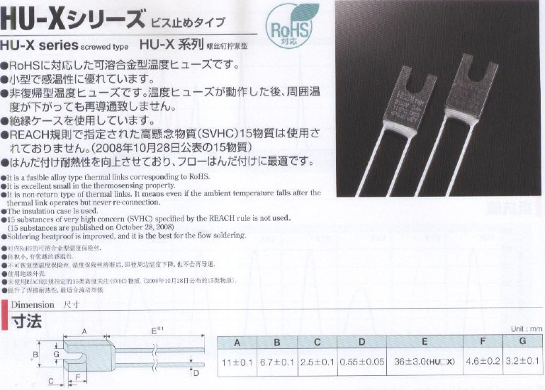 14)HU-X系列,AC250V 2.0A-3.0A/AC125V 3.0-3.5A;具體型號如下: